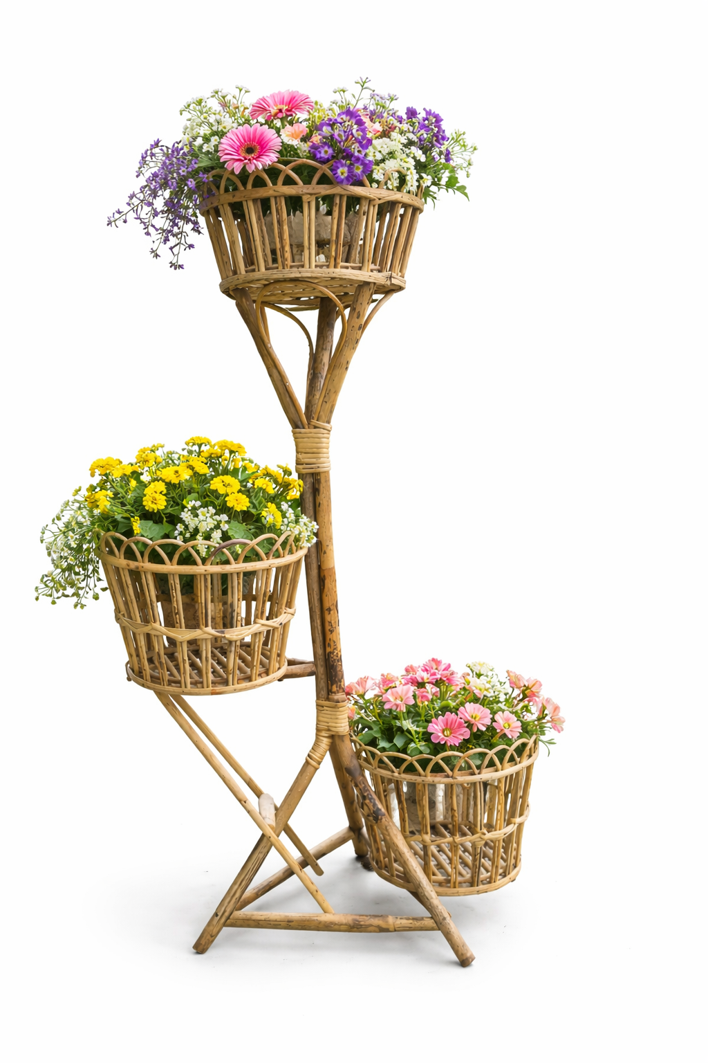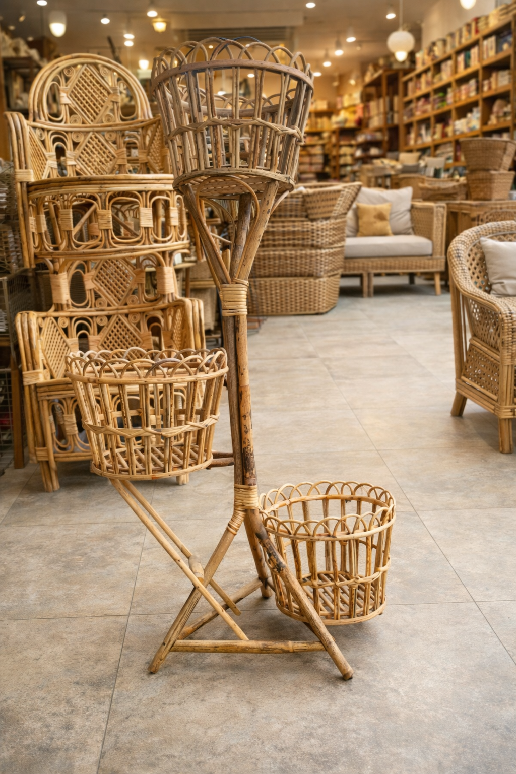 Enhance your home décor with this beautifully handcrafted Natural Cane 3-Tier Flower Pot Stand. Made from eco-friendly natural cane, this stylish plant holder adds a warm and natural look to your living space, balcony, or garden. The three baskets allow you to display multiple flower pots while saving space and keeping your plants organized. Its lightweight yet sturdy structure makes it easy to move and perfect for both indoor and outdoor decoration.